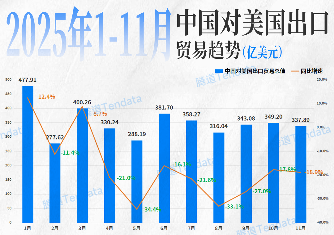 这一目标已初见成效。海关数据显示,2025年1-11月,美国对华货物贸易逆差为2571.52亿美元,同比下降27.1%;仅11月单月,逆差就从348.85亿美元降至237.36亿美元,降幅达32%。