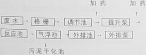 5、设计范围:从污水进入污水站到废水出站(外排池出口)的工艺、管道及构筑物设计。 三、设计处理工艺流程