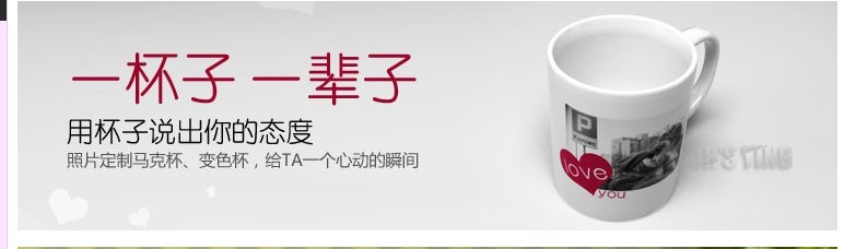 杯子上的图案可以任意印制,您只需提供您喜欢的图案或文字,如:你自己的照片、卡通图案、明星照等。现在给您一个想像的空间,给自己设计一下,想怎么酷就怎么酷。赶快订购吧,您就将拥有一件极具个性的、独一无二的宝贝。qq630563222