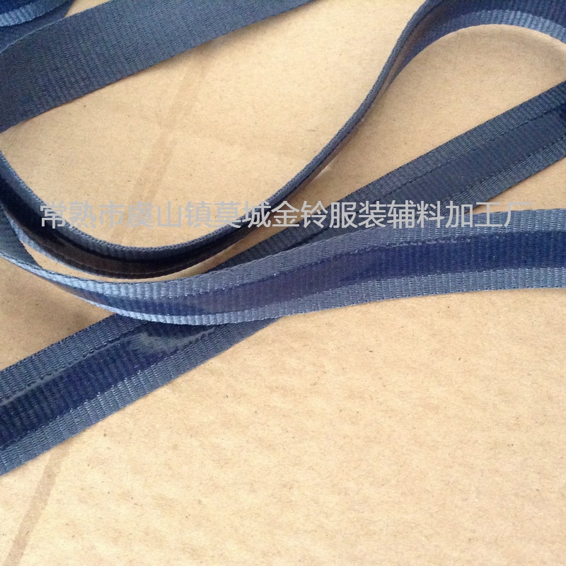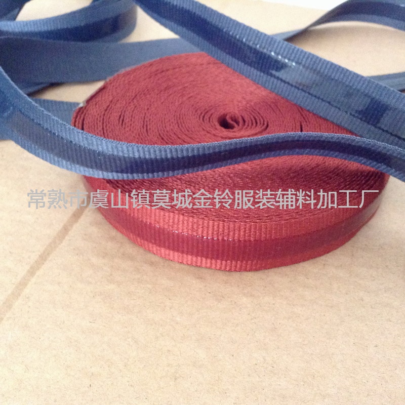江苏常熟金铃是硅胶滴胶加工厂,承接织带滴胶、织带过胶、织带印胶、织带上胶、织带硅胶涂层加工,硅胶涂层适用于各种织带、松紧带、橡筋带、包边带、包边条、提花带、织唛、腰带、文胸、文胸肩带、商标、LOGO、腰里、裤腰里、西裤腰里等窄带织物。