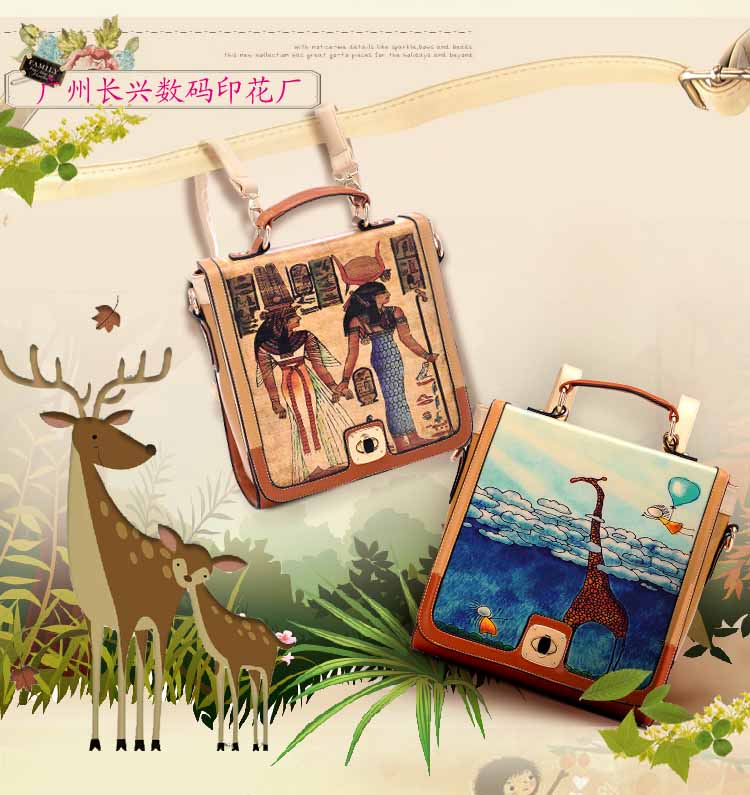 通过电脑控制将要打印的图案直接喷绘在皮革材料上面。广泛应用在箱包手袋厂,皮革厂,皮具厂。也可以打印个性手机外套,平板电脑包,钱包,手提包。印后即是成品,无需做其他处理。