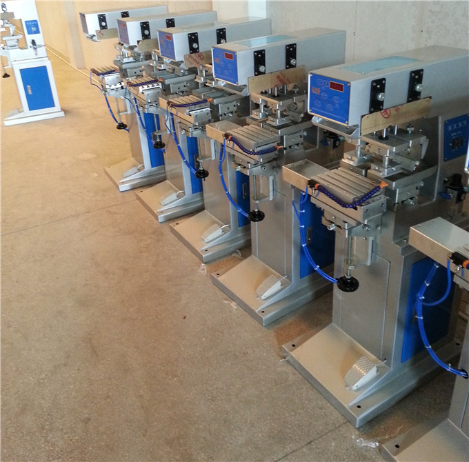 移印机是一种印刷机器,适用于塑胶、玩具、玻璃、金属、陶瓷、电子、IC封等等。工艺过程很简单,先将设计好的图案蚀刻在印刷平板上,把蚀刻板涂上油墨,然后,通过硅胶头将其中的大部分油墨转印在被印刷物体上. 这种印刷技术效果精美,细致。并且极适合在小面积、凹凸面等其他印刷工艺难以奏效的地方,因此移印机广泛用于电器,塑胶、玩具、玻璃等行业。例如: