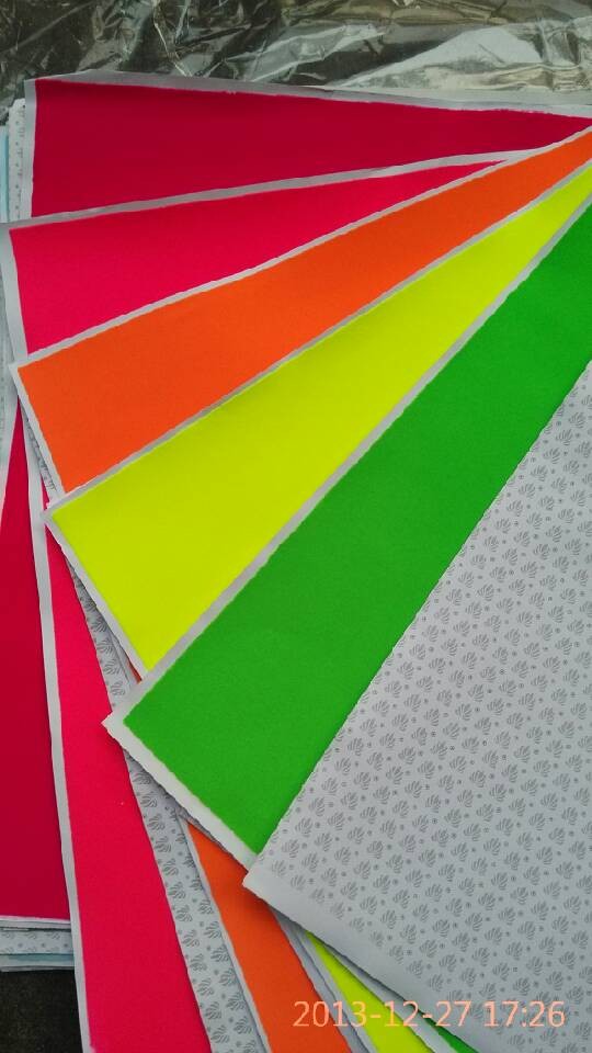 flockpaper又称静电植绒纸。采用静电植绒技术得到的加工纸。色泽鲜艳。柔软而富有弹性,宛如挂毯一般。在基纸的表面上,或仅在图案的特定部位上,涂以热塑性树脂后,把染有各种颜色的短纤维 (如绒毛、尼龙、羊毛等,长度0.2~1.6mm)植于涂胶部位。当通直流电后,受磁场影响,电荷比较容易集中在短纤维的尖端处,使“直立”的短纤维被粘连在基纸上而制得。可用作飞机、游艇、广播室、电视厅的内壁装饰材料。也用于、证章盒的内衬,以及高级工艺美术制品的内装饰材料等。