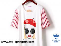属于热转印,印刷效果一般,胶质感严重,不透气,横向拉扯图案会出现裂纹。水洗就掉,不能含棉和深色面料。
