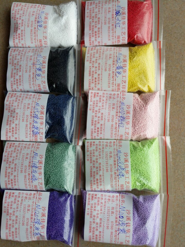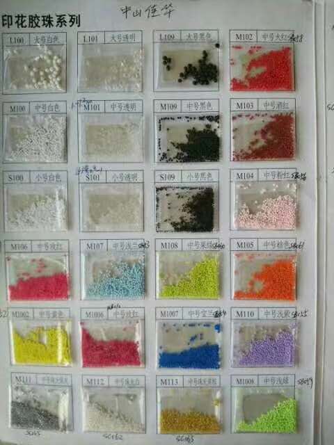 韩国胶珠(又名塑胶珠),采用韩国最新技术将颜色填充压注而成,多应用于布艺服装印花、鞋材面料等。通过专用胶浆粘合到产品上,增强产品的立体效果和手感。产品有多种颜色可供选择,彩色珠常用规格有小号0.6~0.8mm 中码1.0~1.2mm可耐高温120~160 产品优点 1、成膜后表面粘性持久,压敏性极佳、不易剥离、耐水性强。 2、不含邻苯二甲酸盐、甲醛、不含有害重金属、不含溶剂。 使用方法:应用前应先将台板清洗干净,然后刮上上层台胶,需等台胶干后方可使用。颜色黑色 白色 透明 浅粉色紫罗兰 珍珠银 绿色 藏褐色 红色 葡萄色 浅绿色 橄榄绿 粉红 金色银色 橙色 黄色 金黄色等